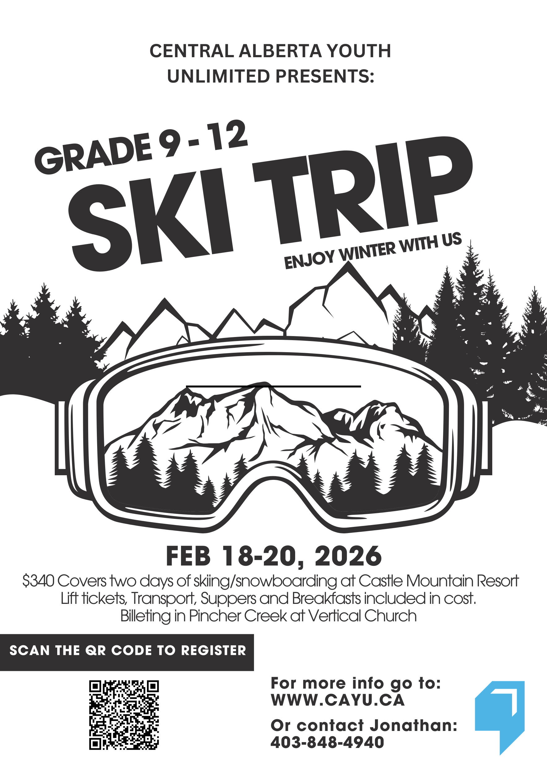 - E-transfer: Send payment to: Please include a clear not with the participant's name and trip details (example: Jane Doe; 2026 Ski Trip).